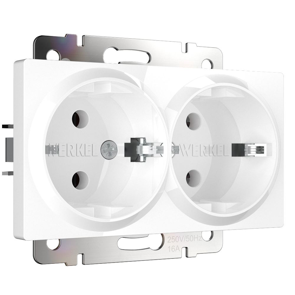 Розетка встраиваемая двойная Werkel с заземлением Белый W1172001