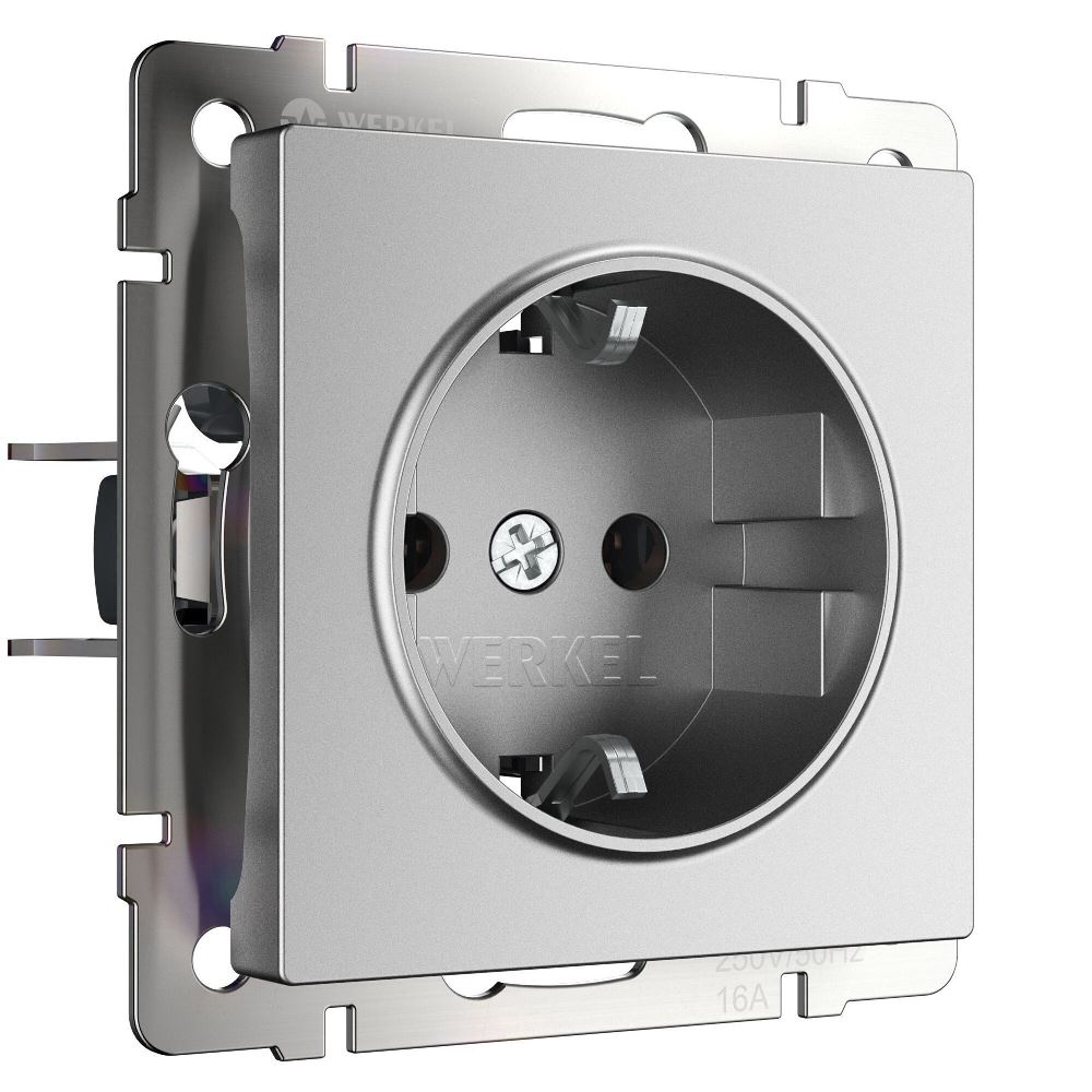 Розетка встраиваемая Werkel с заземлением и шторками Серебрянный матовый W1171165